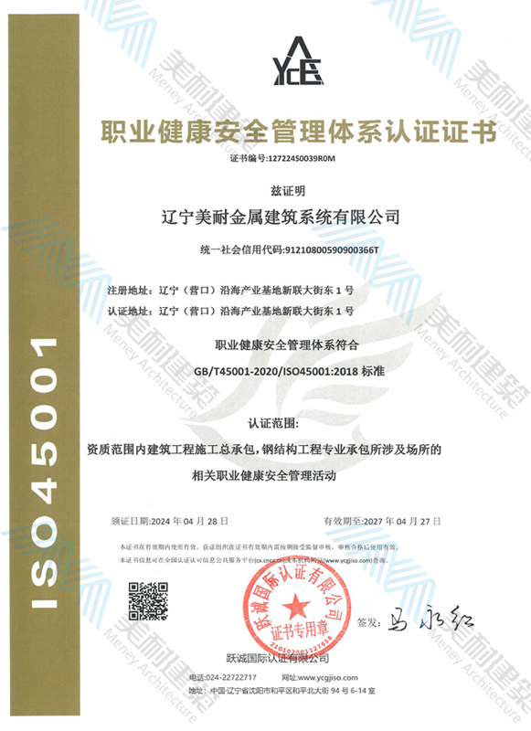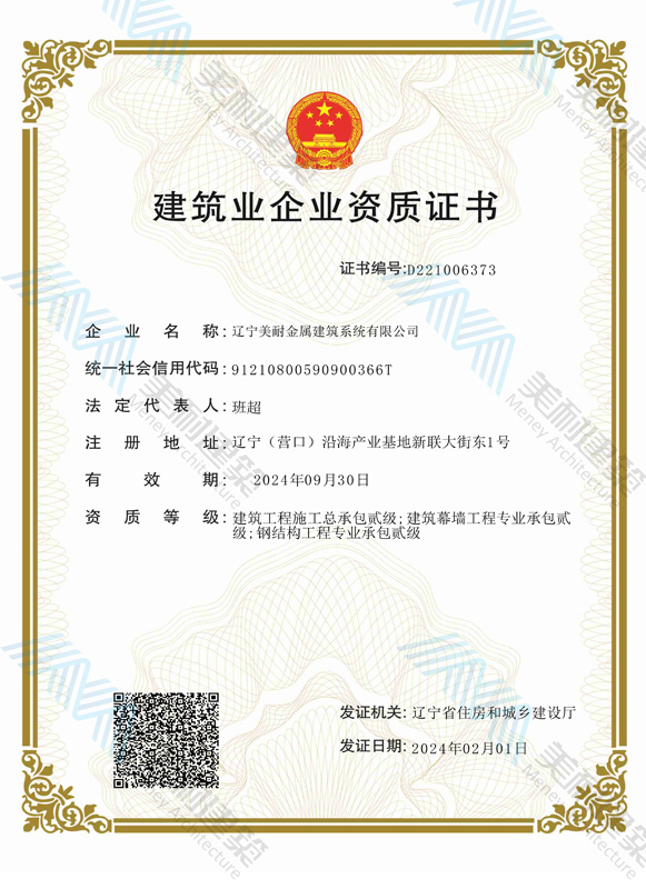 遼寧美耐金屬建筑系統有限公司位于遼寧(營口)沿海產業(yè)基地,專注于預制金屬建筑系統領域,是一家集工業(yè)建筑設計、制作、施工及相關的技術咨詢與服務為一體的綜合性服務企業(yè)。作為國家鋼結構協會會員、中國建筑金屬結構協會會員單位與國家高新技術企業(yè),美耐建筑集建筑工程施工總承包、鋼結構工程專業(yè)承包等多種資質于一身,并擁有22項鋼結構建筑領域專利,9項軟件著作權。